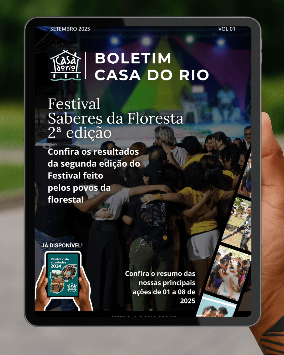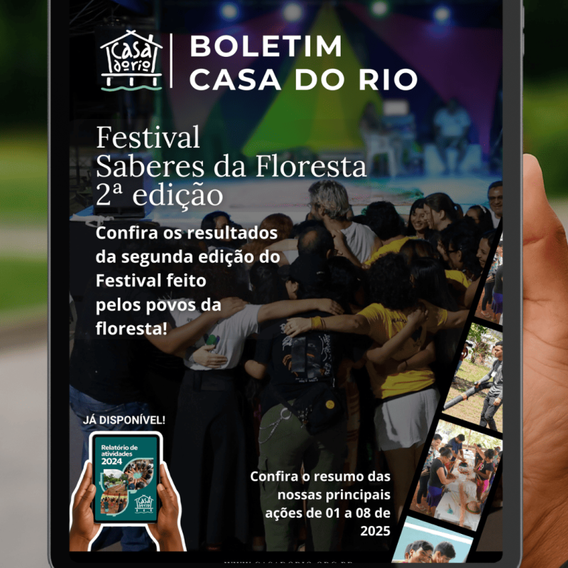 A Casa do Rio acaba de lançar a primeira edição do Boletim Casa do Rio, uma publicação que reúne os principais resultados e aprendizados de janeiro a agosto de 2025. O boletim destaca ações realizadas junto às comunidades da BR-319 e celebra os impactos da segunda edição do Festival Saberes da Floresta, realizada em junho, no município do Careiro (AM). Além disso, traz relatos de iniciativas que fortalecem o protagonismo das populações amazônicas e reafirmam o compromisso da organização com a preservação da floresta e a valorização dos saberes tradicionais.